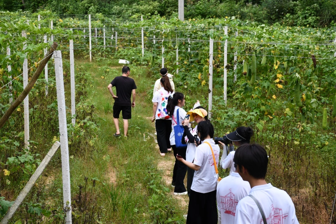 活动中,团队先后来到烤烟制作车间、黄花梨园、丝瓜种植基地、林蛙养殖基地、葡萄园、龙舟码头等地开展调研。