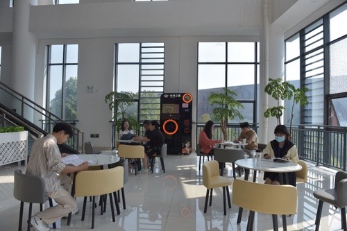 日前,湖南化工职业技术学院图书馆将二楼大厅一侧改造为咖啡休闲区,引进了自助咖啡机,受到了师生们的欢迎。