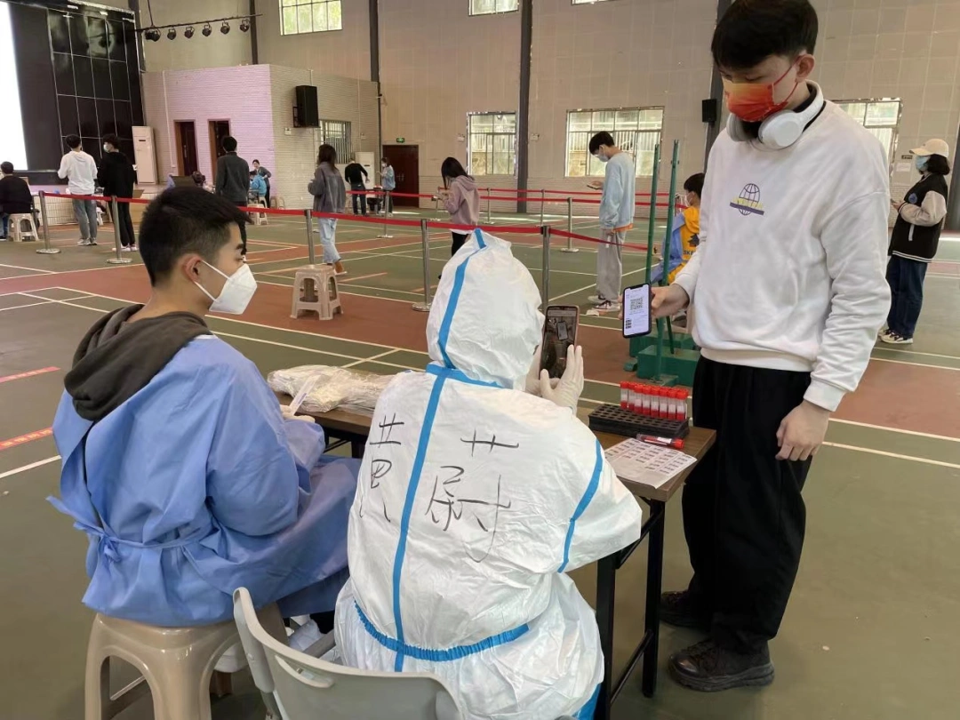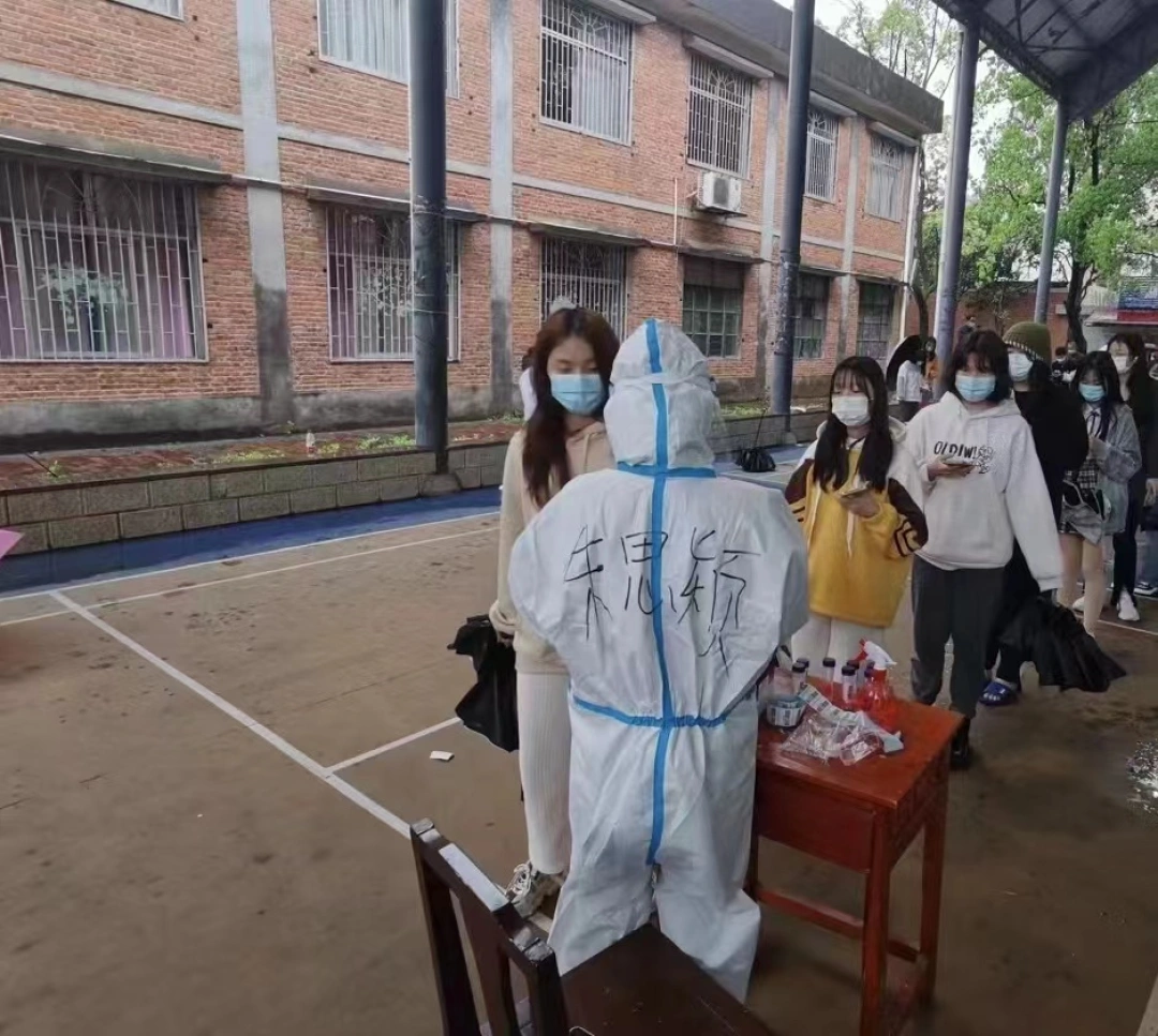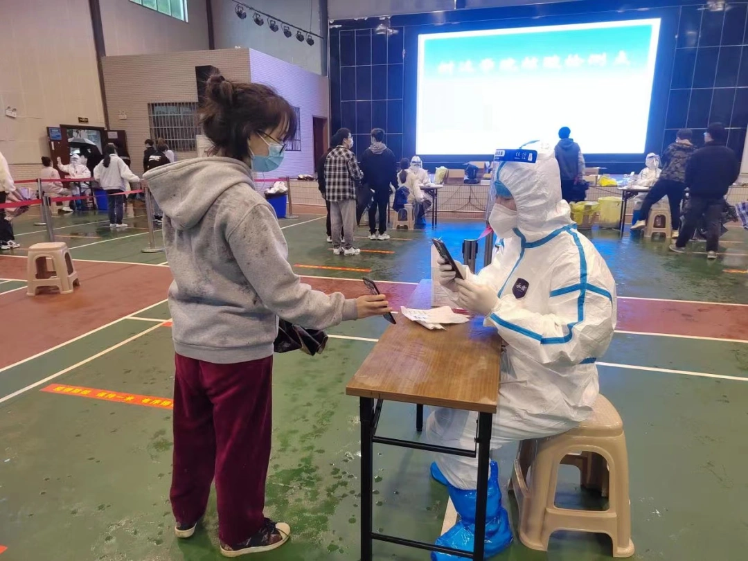 当天值班的教职工党员按时来到桃花坪校区文体活动中心、张公岭校区风雨操场的核酸检测现场,认真参加岗前培训,尽快熟悉相对专业的医护流程。尽管来自不同的教工党支部,但大家通过培训和互相帮助,凝聚成了团结高效的工作团队。在核酸检测现场,教职工党员身穿防护服,协助医护人员进行核酸检测相关工作,保障了核酸检测工作井然有序。