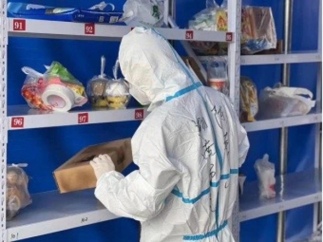 这个工作园区工作组投入了大量人力,与湖南大学分工进行。每天下午4点至晚上8点,由湖南师大的辅导员、物业人员与学生志愿者一同进行外卖消毒、分拣及分发工作,平均每分钟消毒转接各类外卖快递20余件。
