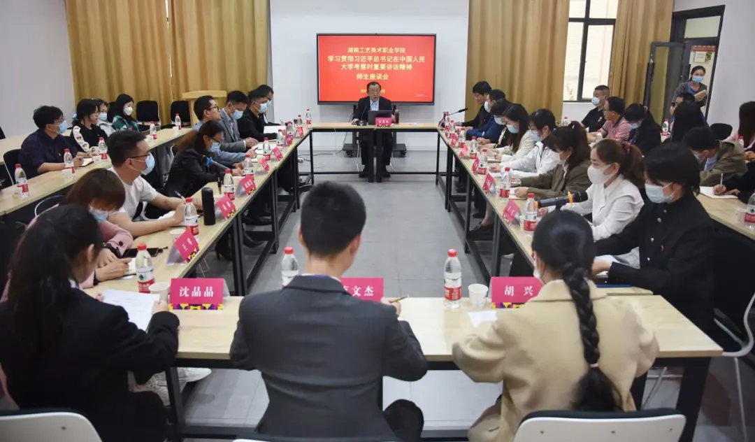 5月10日下午,湖南工艺美术职业学院举行学习贯彻习近平总书记在中国人民大学考察时重要讲话精神师生座谈会。院党委书记余克泉主持座谈会,五十余名师生代表齐聚一堂,畅谈学习心得与体会。