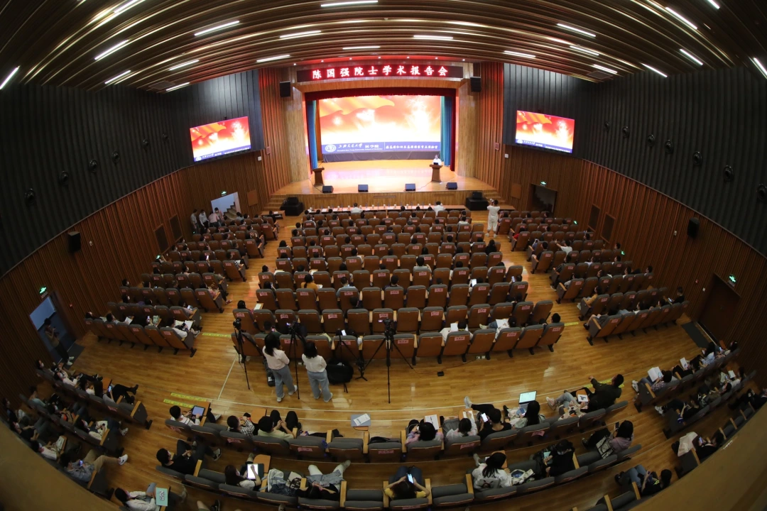 受聘仪式后,陈国强院士向在场师生作了“从科学实践中感悟科学研究”的学术报告。他详细阐述了自己和科研团队长期研究癌症基因,从发现问题、分析问题到解决问题,并发表系列论文的科学实践经历,分享了自己科学研究过程中的心得体会。