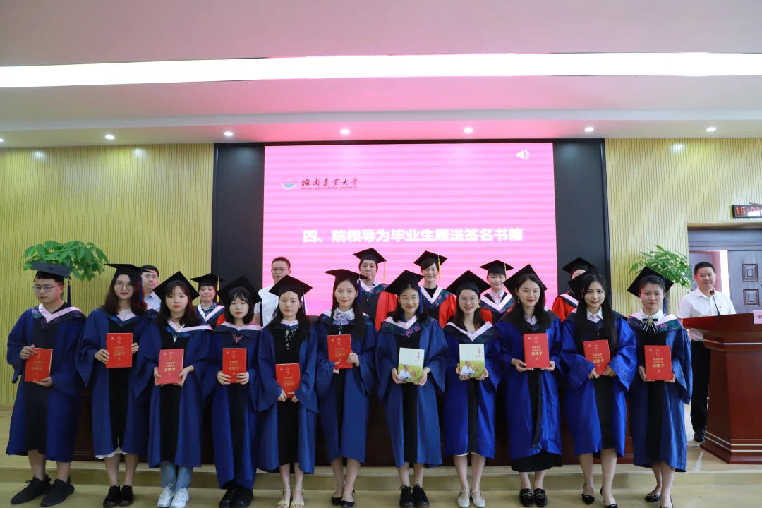 毕业典礼上,学子们收到了学院全体院领导赠送的写满深切寄语的《袁隆平传》《袁隆平的世界》《把功勋写在大地》等书籍,殷切期望同学们坚守初心,砥砺奋斗。