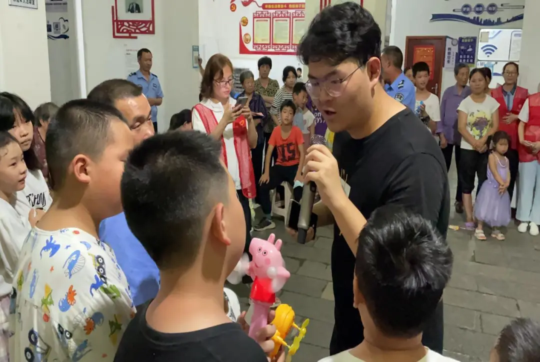 “大学生的学习,不仅是为了自己,更应该是造福人民。年少读书出平江,学成归来回报乡梓一直是我的梦想。”家住岳阳平江的2021级计算机科学与技术专业的张铁戈带领小分队,来到了红色革命老区岳阳平江县,在当地天岳村社区和洪家塅社区现场讲演。在洪家塅社区,没有投影设备,张铁戈就站在社区群众围成的圈中进行宣讲,社区群众互动频频,宣讲效果非常好。