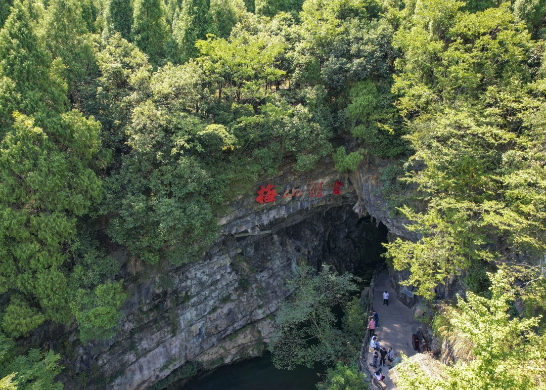 梅山龙宫现开发有游览路线1856米,共五层,全程游览时间约80分钟。你做好进去的准备了吗?先坦言一句,它一定会拓宽你对自然奇迹的眼界。
