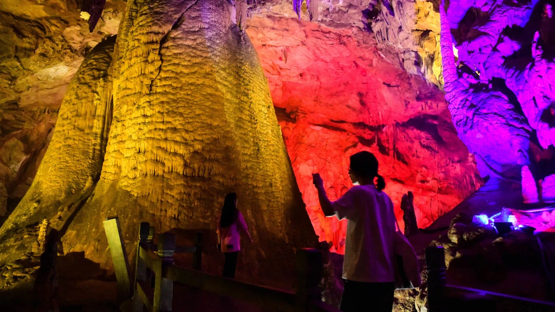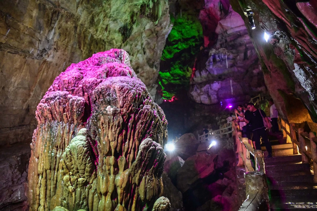 这些传闻的主人公,就是2002年前未被开发的梅山龙宫。如今已成为国家4A级景区的它在一片灯光照耀下更显壮观和诡谲。这座“亚洲最美洞穴博物园”拥有各式各样的喀斯特地貌,许多钟乳石都到了你想象不到的年龄,置身其中就仿佛走进了国家地理杂志,你真的只有张嘴感叹大自然之奇迹的份。