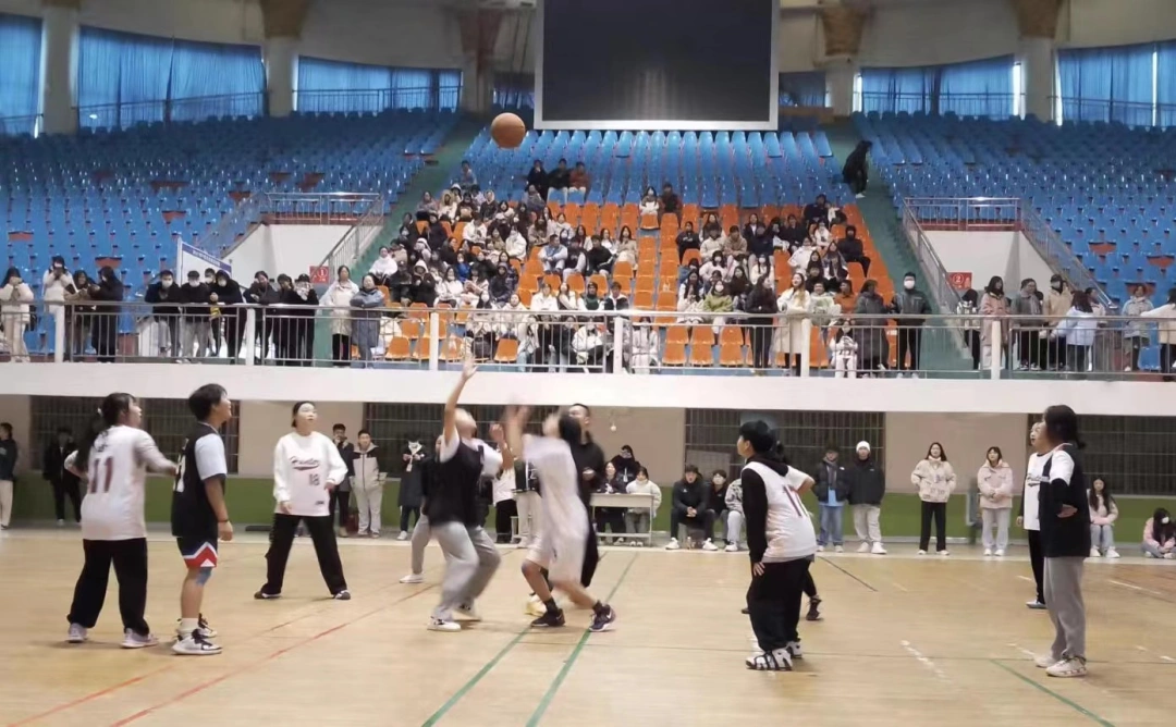 大学体育馆内热闹非凡,湖南一高校举行篮球比赛