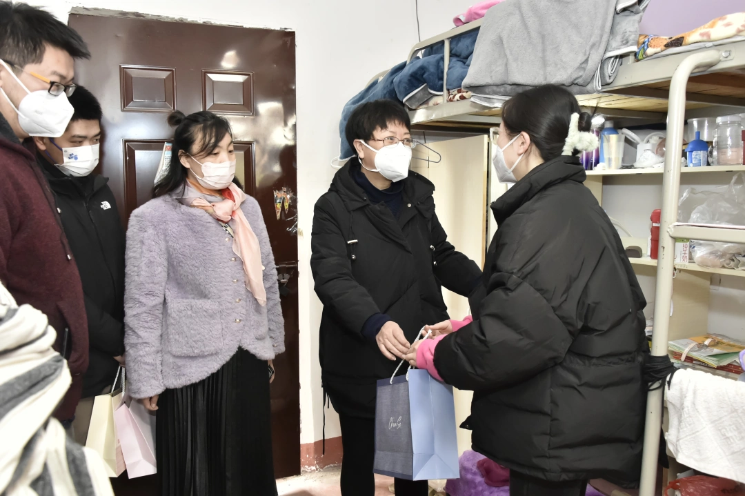 亲手书写的贺卡、同学画的可爱漫画、御寒保暖的暖贴、护眼蓝莓、寓意“非你莫属、士气如虹”的咖啡和士力架、“心想事成、学习旺旺”的橙子的旺仔牛奶……医学技术与护理学院举办暖冬慰问活动,将精心准备寓意满满的考研加油包送到考研学子手中;电气与信息工程学院为2023届考研学子准备了各式各样的牛奶大礼包,寓意“牛气冲天”,学院邀请了院领导、班主任、辅导员老师、学弟学妹们在贺卡上写上温暖的祝福语;交通运输工程学院、机电工程学院党总支负责人看望正在图书馆和学生宿舍复习备考的学生,送去问候与祝福,询问学习及身体近况,叮嘱大家劳逸结合……