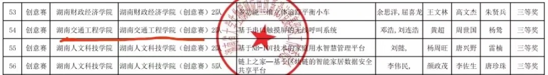 湖南省大学生物联网应用创新设计竞赛获奖名单公布