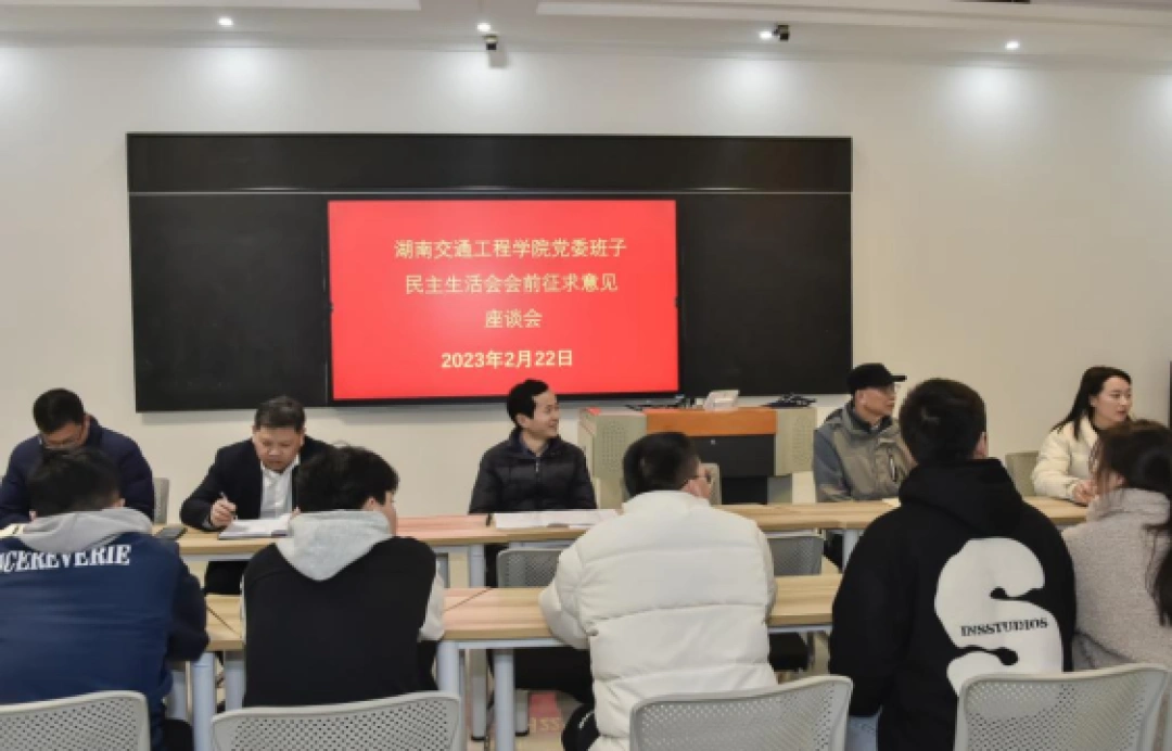 2月22日,湖南交通工程学院党委书记刘文君主持召开学校党委班子民主生活会会前征求意见座谈会,面对面听取师生代表意见建议。