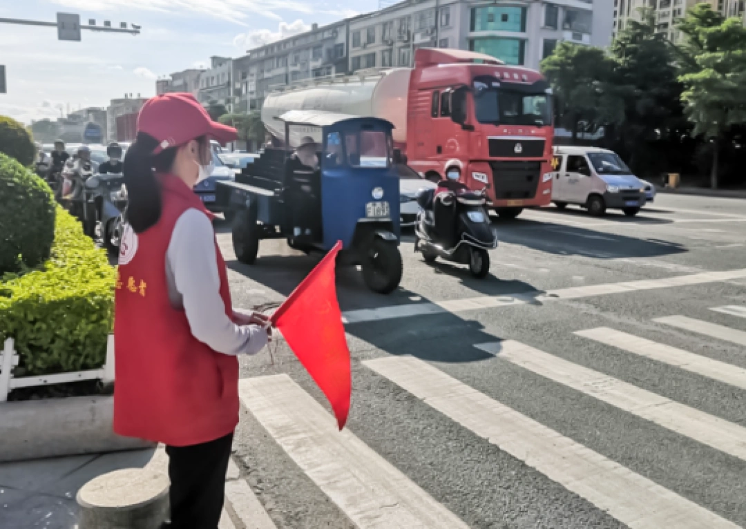 “学雷锋”当天,湖南一高校40余名师生走上街头劝导交通