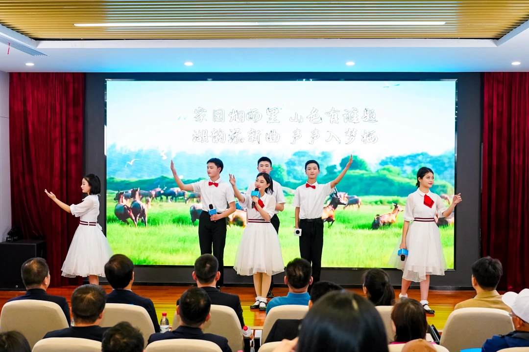 △岳阳市岳西中学学生进行《洞庭湖志》朗诵表演。