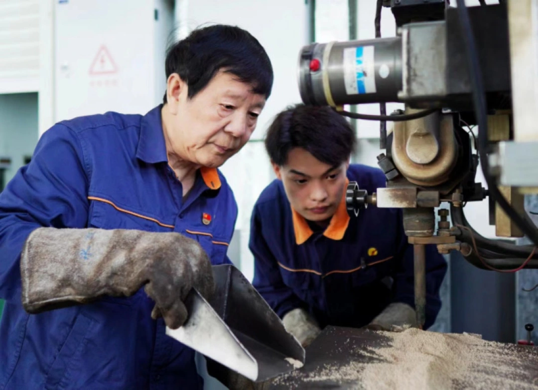 田僮的师傅欧勇也是艾爱国的徒弟。在艾爱国、欧勇等师傅的言传身教下,刚进入单位的田僮深知磨练技艺的重要性,他每逢周末都早早来到实验室,用钢材废料练习手工焊接技能,一焊就是一整天。