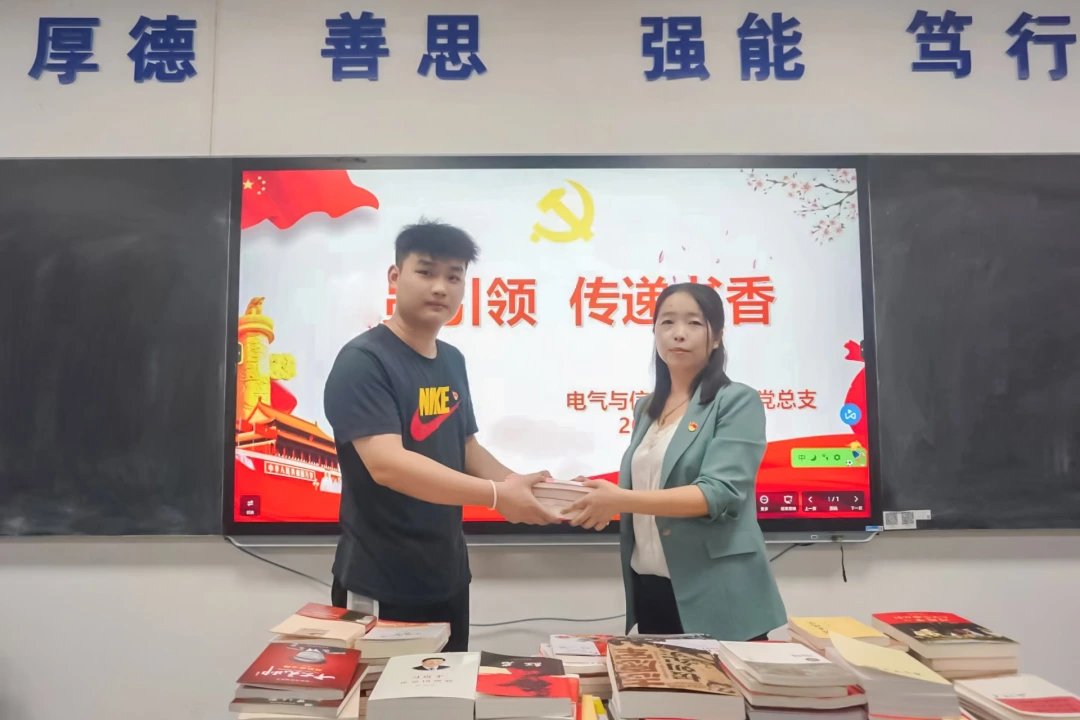 近日,湖南交通工程学院电气与信息工程学院举行“强引领,传书香”爱心捐书活动,100余名师生志愿者捐赠了300余册经典书籍。
