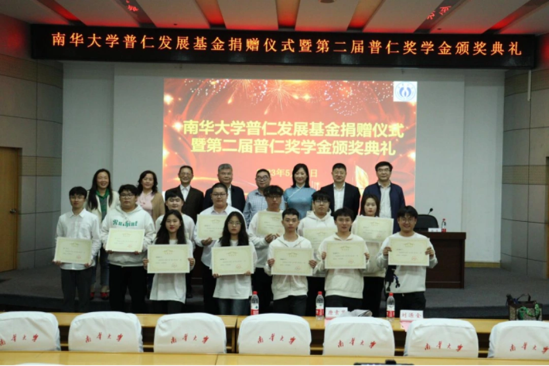 南华大学教育发展与校友联络办主任李先国老师宣读第二届普仁奖学金表彰决定。与会领导及嘉宾为12名获奖学生颁奖并合影留念。该校土木工程学院张成隆同学作为获奖代表发言,他表示将秉持感恩之心,把奖学金化为源源不断的动力,全面发展,再创佳绩,回报社会。