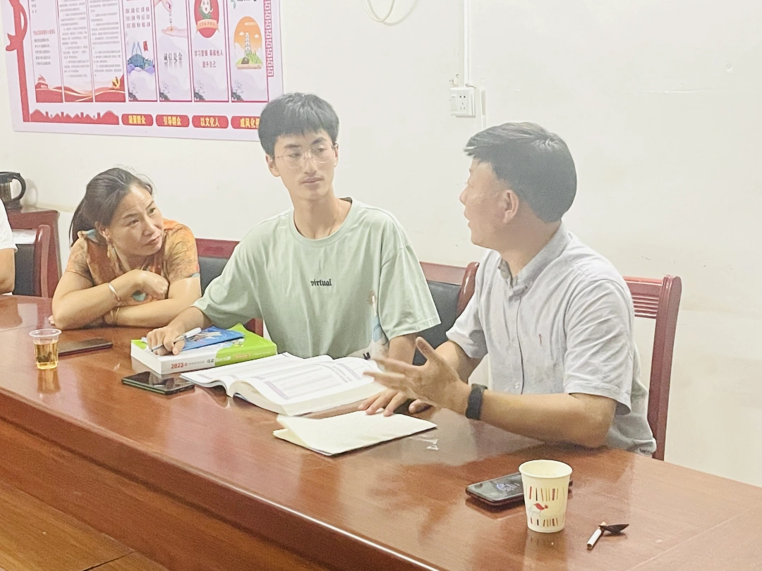 工作队队长田向阳在长沙理工大学招生就业处从事高校招生工作,当即与村支两委商定,召开志愿填报会,一对一为有需要的家庭提供志愿填报指导。田向阳建立了微信咨询群,及时在群里解答大家提出的问题,并公布了自己的手机号码和办公地点,随时接受大家线上或线下的咨询。