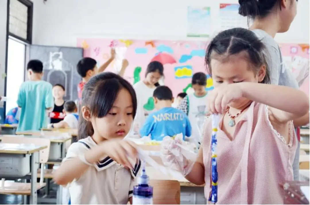 彭晋怡介绍,扎染有千年的历史,团队设计这节课的初衷就是想发挥专业所长,既让孩子们了解传统工艺,又锻炼他们的动手能力,培养他们的想象力。