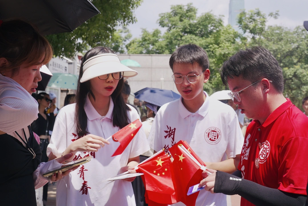 正值暑期,来长沙游玩的游客不少。当天,该校柳皓予、王天瑞、李心悦三名学生组成小分队,在橘子洲景区售卖小扇子,同时还会给游客送小红旗作为拍照打卡的道具。“今天天气晴好,景区人也多。”柳皓予告诉记者,一大早,三人就拿着30把扇子去卖,本打算一天卖完,但是中午1点刚过,就只剩下3把扇子了。