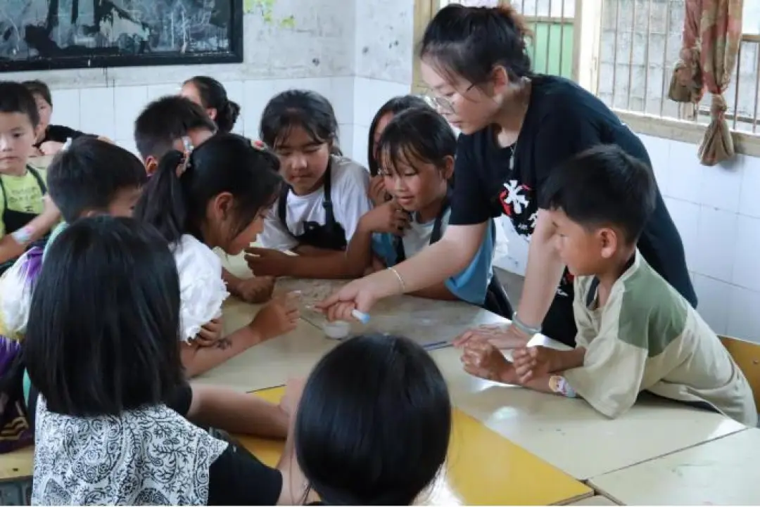 据悉,长沙理工大学赴湘西花垣县“好玩的博物馆”乡村儿童美育体验专业实践团,创新交互体验式新型美育课堂模式,以夜郎坪村腊乙小学为据点,覆盖周边五个村,为百余名孩子开展地质美育课堂。