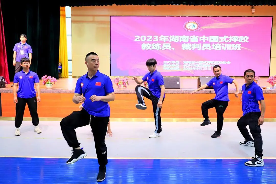中国式摔跤作为中华传统体育运动项目,有着独特的魅力。9月23日,2023年湖南省中国式摔跤教练员、裁判员培训班开班仪式在长沙市恒定高级中学举行,106名来自全省的中国式摔跤教练、裁判齐聚,开展为期三天的培训。