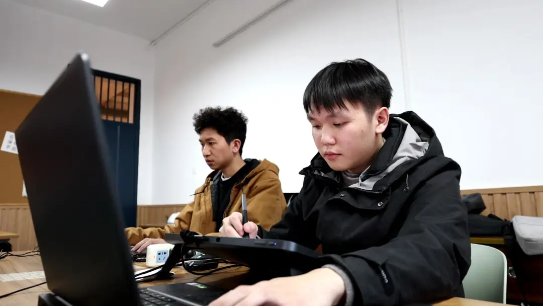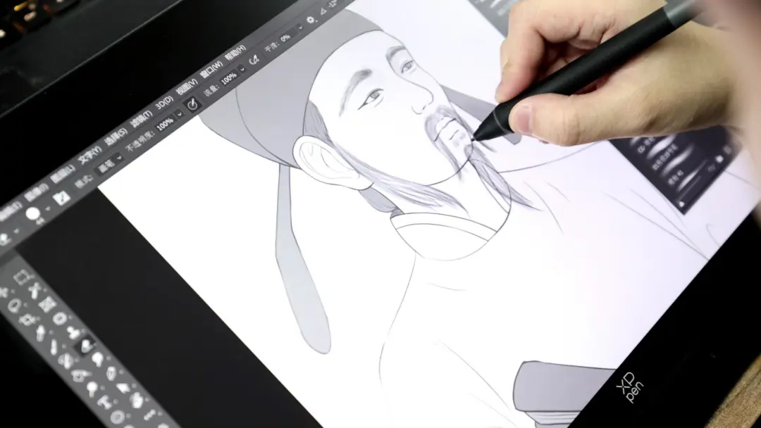 与传统的画作不同,李松林选择在数位板进行插画创作。用数位板连接电脑PS软件后,李松林一笔一画,先勾勒出刘禹锡的肖像轮廓,再慢慢去修正。在之后的4个月内,李松林一有空就投入到创作中去。最终,在李松林的笔下,从刘禹锡在朗州给杜佑写信时的失望与苦闷,到与段弘古游桃花源、品擂茶的喜悦之情,再到送别柳宗元的不舍等,都逐一呈现出来。