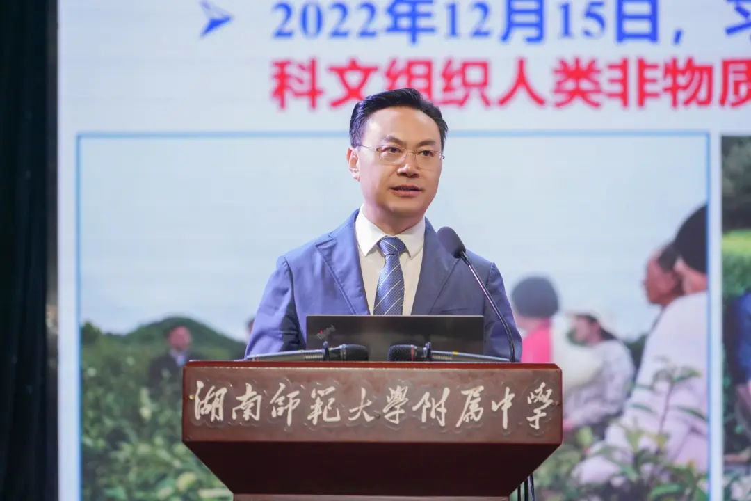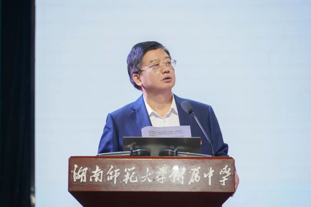 4月11日,中共第二十届中央候补委员、湖南师范大学党委副书记、校长刘仲华教授走进湖南师大附中校园,为朝气蓬勃的中学生们带来了一场主题为“茶产业、茶科技与茶生活”的精彩讲座。这是湖南师大附中第37届科技节院士进校月的第二场院士讲座。湖南师大附中全体高一年级学生在现场聆听了讲座,湖南师大附中教育集团师生、全国中小学科学教育实验校部分师生在线上观看了直播。
