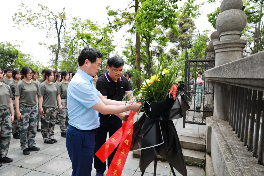 活动中,学校还组织前往岳麓山黄兴墓开展祭扫活动。学生代表敬献花篮、全体人员肃立,共同向辛亥革命英烈默哀致敬。随后,同学们集体观看红色影片、进行军歌拉练,传承和弘扬爱国主义精神。