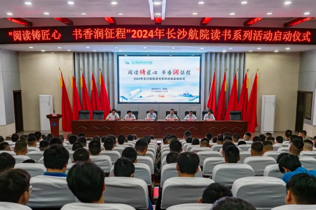 4月23日下午,长沙航空职业技术学院“阅读铸匠心 书香润征程”2024年读书系列活动启动仪式举行。该院党委书记朱国军出席活动现场并致辞,学院师生代表等近300人参加,启动仪式由图信中心主任谢智慧主持。