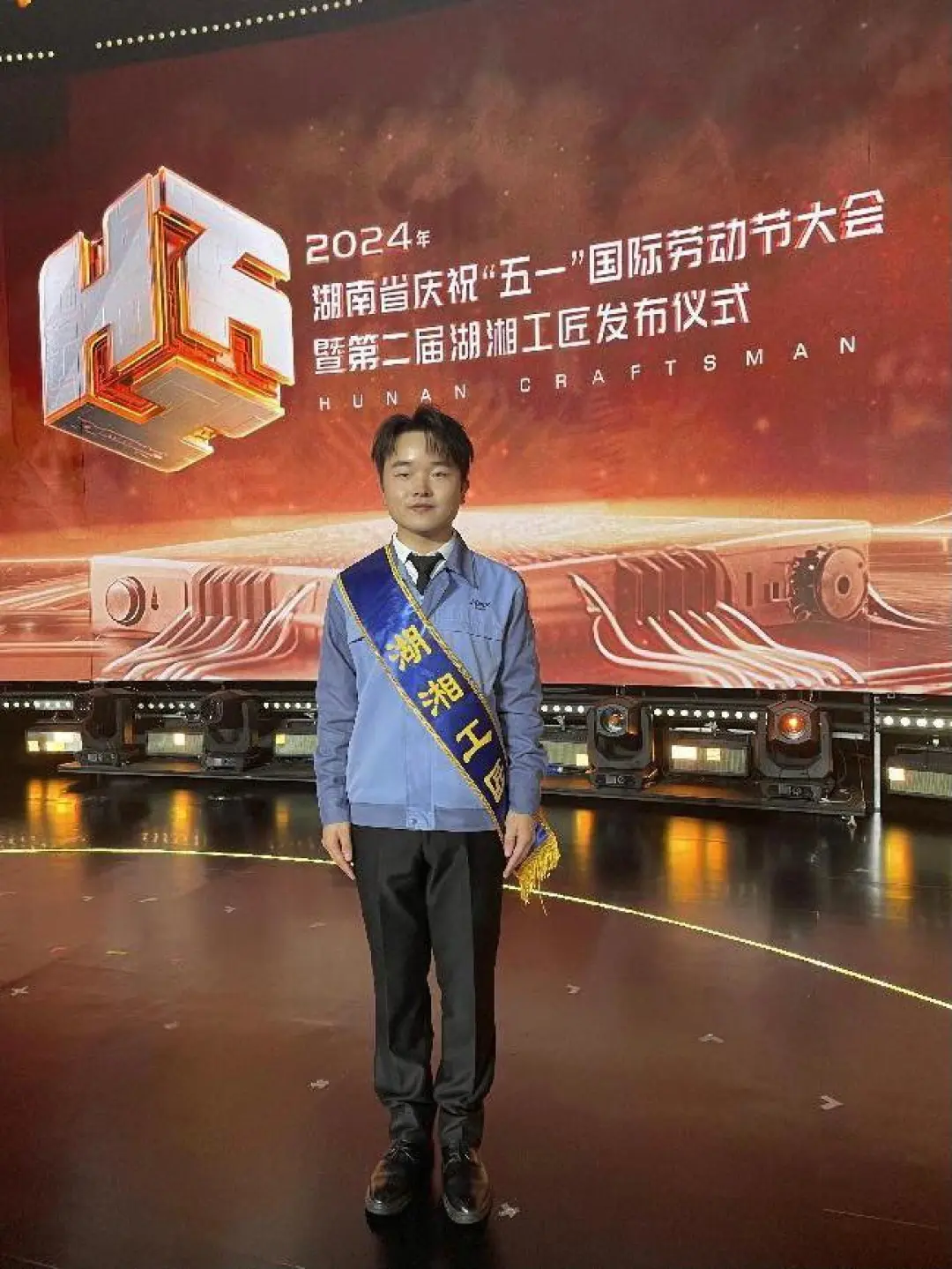 4月29日,年仅24岁的湖南工业职业技术学院校友申文杰受邀参加湖南省庆祝“五一”国际劳动节大会暨第二届湖湘工匠发布仪式,并获评为“湖湘工匠”,是全省100名湖湘工匠中的“00后”青年工匠。