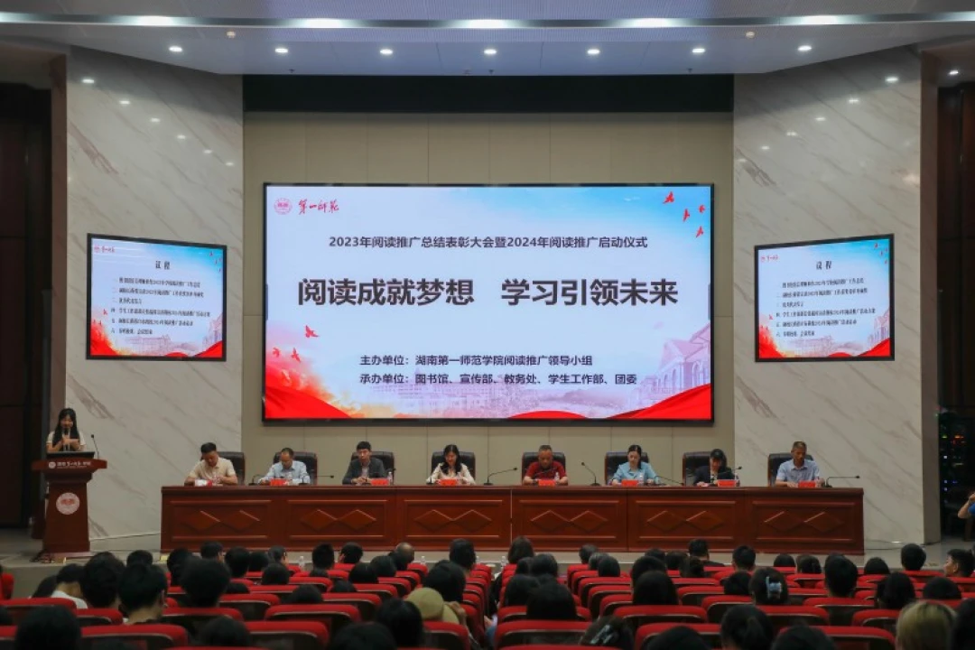 春朝胜日时新,书卷芳华致远。5月8日下午,湖南第一师范学院2023年阅读推广总结表彰大会暨2024年“一校一书”阅读推广活动启动仪式隆重举行。