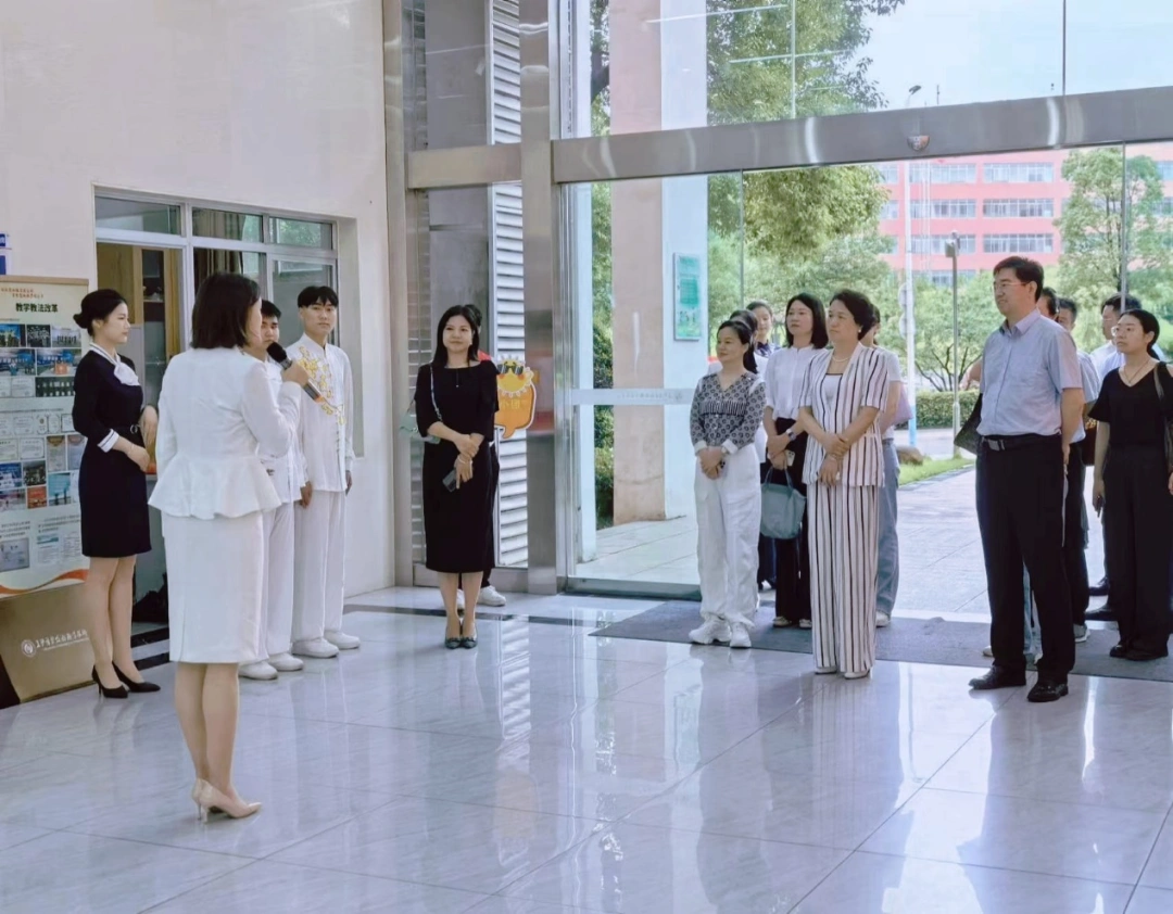 考察团一行深入学校会展实训中心、智慧文旅虚拟仿真实训基地、湘菜产业专业群综合实训基地等场所,实地考察了该校湘菜学院、湘旅学院、文化创意学院相关专业的办学规模、实训设施、教学成果等情况,听取了学校总体介绍和“红小团”模式发展、人才成长以及特色成果。