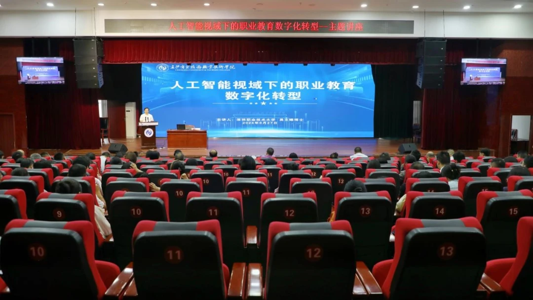 乘“数”而上,赋“智”前行。日前,长沙商贸旅游职业技术学院迎来了一场人气爆棚的讲座,偌大的报告厅座无虚席,学校500余名教职工现场聆听了深圳职业技术大学吴文曦博士以《人工智能视域下的职业教育数字化转型》为题作的专题讲座。