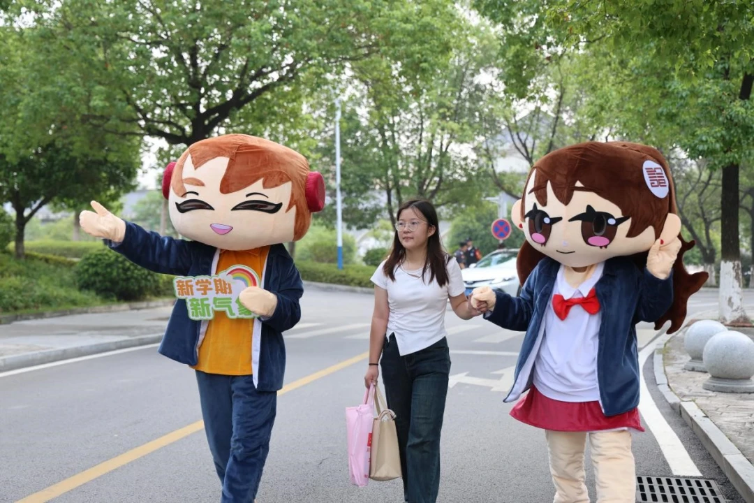 “我们迎新玩偶团队共由十多名在校生组成,因为服装厚重,穿上蹦一会儿就大汗淋漓,只能20分钟一换班,虽然很辛苦,但通过这种方式传播友爱,送去快乐,我们特别开心。”美术与设计学院学生志愿者刘怡嘉介绍道。