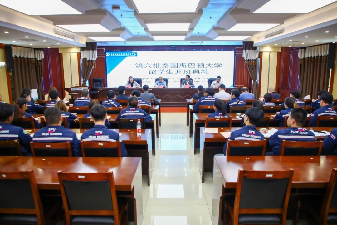 日前,第六批泰国斯巴顿大学留学生开学典礼在湖南铁路科技职业技术学院举行。来自泰国斯巴顿大学的35名学生来到铁科校园,开启学习之旅。