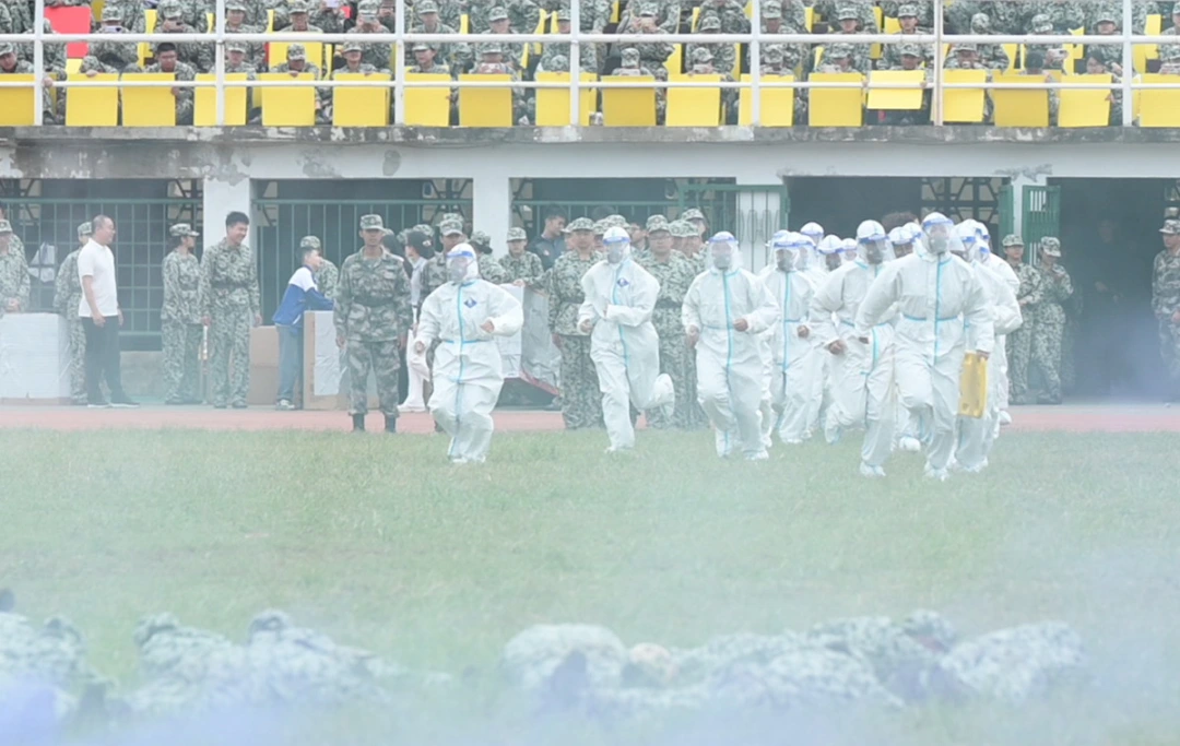 随后,一系列精彩纷呈的特色方阵表演将现场气氛推向了高潮。翻花方阵的创意无限、匕首操的凌厉有力、拳术表演的刚劲勇猛、医疗急救操的实用高效以及核生化防护的严谨认真……每一个节目都凝聚了同学们的辛勤付出和汗水结晶。