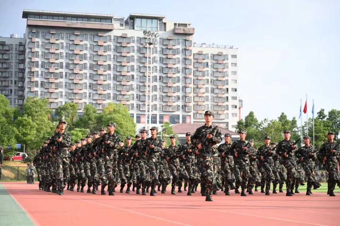 随着分列式进行曲响彻全场,教官分队持枪入场,眼神坚毅。他们以豪迈的激情斗志、过硬的军事素养向全校师生展现昂扬奋发、勇敢坚毅的精神风貌和青春风采。