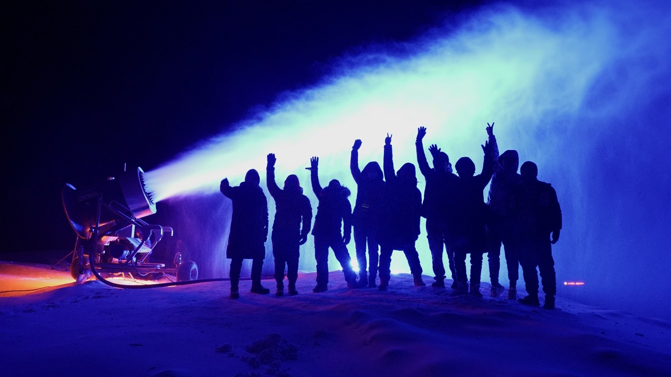 身为制片人,周谦要负责整个团队的管理和相关制片工作的统筹、协调。从前期创意讨论、预算报价、计划安排到实拍时组织、协调团队内部导演组、摄影组、服化道等部门高效运转,拍完后督查后期剪辑、三维、特效合成,协调层层审片、交片等工作,还要带领制作团队做好和冬奥组委、各拍摄场地的对接联系等……“过程是艰辛的,甚至很痛苦。”时间紧,任务重,冰天雪地的实景拍摄给团队带来了严峻的考验。在河北张家口大境门的拍摄持续到凌晨三点多,当天最多的场面有300多群演,其中不少老人和小孩。“12月的深夜,真是天寒地冻,零下10多度,人都感觉冻麻了,对心智、体力、韧性,都是极大的挑战。但大家都是憋着一股劲,一直以饱满的工作热情去拍好这支片子。”