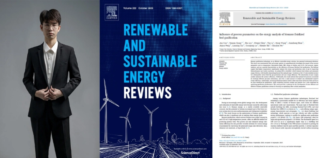 生物质气化是实现能源结构绿色转型、助力“双碳”目标的关键技术。近日,湖南城市学院市政与测绘工程学院本科生郭俊在该领域取得重要研究进展,为高效生物质能源系统的开发提供了关键的理论指导。该研究成果以《Influence of process parameters on the exergy analysis of biomass fluidized bed gasification》为题,发表于中科院SCI一区顶级期刊《Renewable and Sustainable Energy Reviews》。