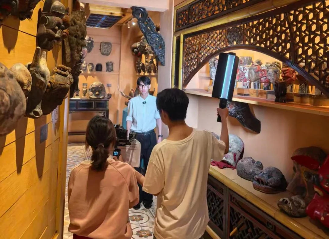 湖南文理学院学生作品《傩戏面具 交映生辉》将镜头对准常德民间文化地标——溪上美术馆及其珍贵的傩戏面具藏品。创作团队采用“第一人称”叙事视角,让傩戏面具“开口说话”,娓娓道来其承载的历史记忆与文化内涵,深刻阐释了“守护非遗,不是凝固历史,而是让文化在传承与创新中生生不息”的核心理念。团队队长黄蕾介绍说,该作品的创作历时五个月,团队成员深入溪上美术馆,对馆藏傩戏面具进行了细致的调研与拍摄,力求在学术性与艺术性之间找到平衡。“我觉得通过英语视频这座桥梁,让传统非遗文化走向世界是一件很有意义的事情,我们想从文化的接受者转变成文化的传播者,而传播的第一步,是深刻的自我认知。这段特殊的经历带给我们的是一种‘向下扎根’的勇气,根系越深,我们向外伸展、影响世界的枝干才能越远。”