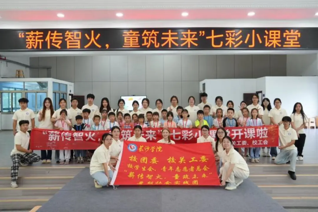 “岛屿化作小星星,黑夜里放光明...”小精灵的歌声缓缓响起,小朋友们我们上课啦!7月1日至10日,长沙学院“薪传智火,童筑未来”暑期社会实践团在该校招就处招聘大厅开展了为期十天的七彩小课堂活动。该活动由长沙学院团委、关工委、工会联合指导,校学生会、青年志愿者总会及造血干细胞宣传服务团队共同组织实施,50名大学生志愿者与三十余个教职工家庭的子女结对,通过“1对1、1对2青春互育”模式,在课程互动中实现儿童成长与大学生实践能力提升的双向赋能,不仅破解了教职工暑期带娃难题,更谱写出一部跨代际的成长诗篇。