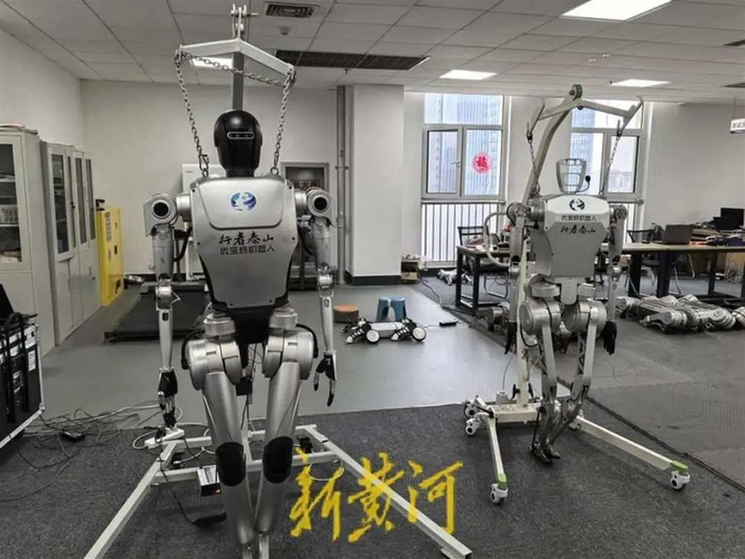 人形机器人为山东优宝特智能机器人有限公司(以下简称“优宝特”)自主研发。2月22日上午,新黄河记者来到优宝特时,研发人员依然在为人形机器人“行者泰山”进行调试。不过,记者也了解到,现在调试的已经是“行者泰山”的升级版“行者泰山”R2了。