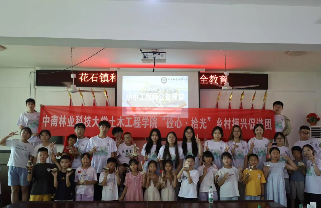 近日,中南林业科技大学土木工程学院“砼心拾光”社会实践团走进湘潭县花石镇,带着丰富多彩的“知识行囊”为当地青少年播撒知识、传递温暖,为乡村教育注入青春关怀。