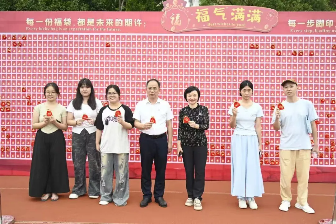 踏入校园,新生们立即被壮观的福袋展板所吸引,只需手持录取通知书和身份证,轻轻一抽,便开启了这份专属的幸运之旅。福袋“内藏乾坤”,不仅有实用的笔记本、启迪智慧的书籍、贴心的水杯等,还有学校为新生们准备的食堂代金券,让初来乍到的新生们感受到学校的“特别惊喜”。