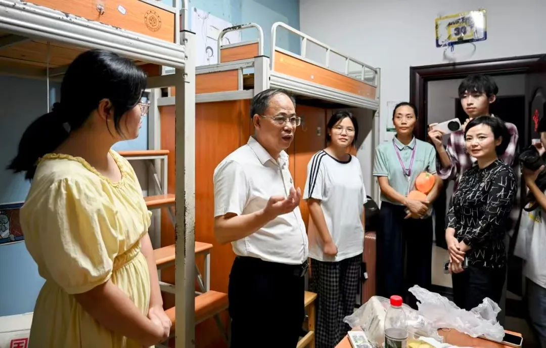 在学生寝室,何振与新生家长进行了交流。他请家长们放心,表示学校将积极创造更好的学习生活环境,全方位助力学生成长成才。“学校领导和老师这么认真负责,学校的服务细心又细致,让我们既放心又安心!”一位来自黑龙江的家长表示。