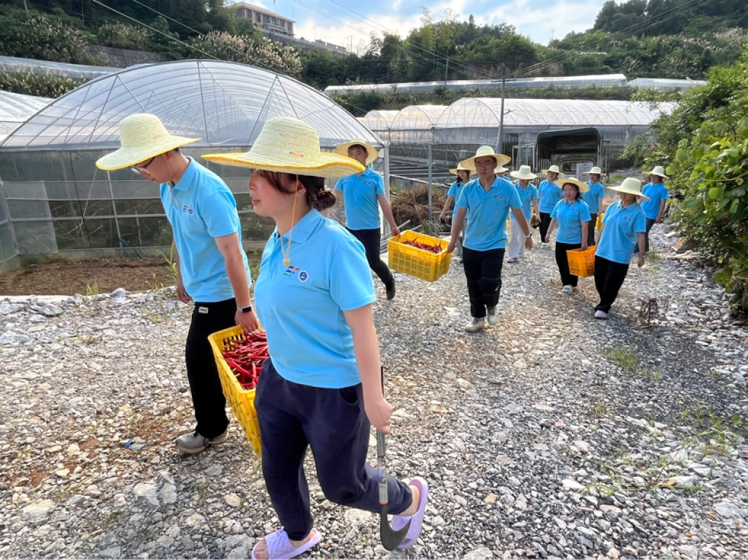 7月8日上午,湖南交通工程学院暑期三下乡“筑梦隆回,智电兴乡”青春实践服务团队来到邵阳市隆回县岩口镇枫井坪村千亩地生态农业发展有限公司基地,开启了一场充满乡土气息的辣椒采摘实践。深入千亩农田有限公司辣椒种植基地,开展实地调研与实践体验活动,近距离感受现代农业发展成果,体悟乡村振兴的生动实践。