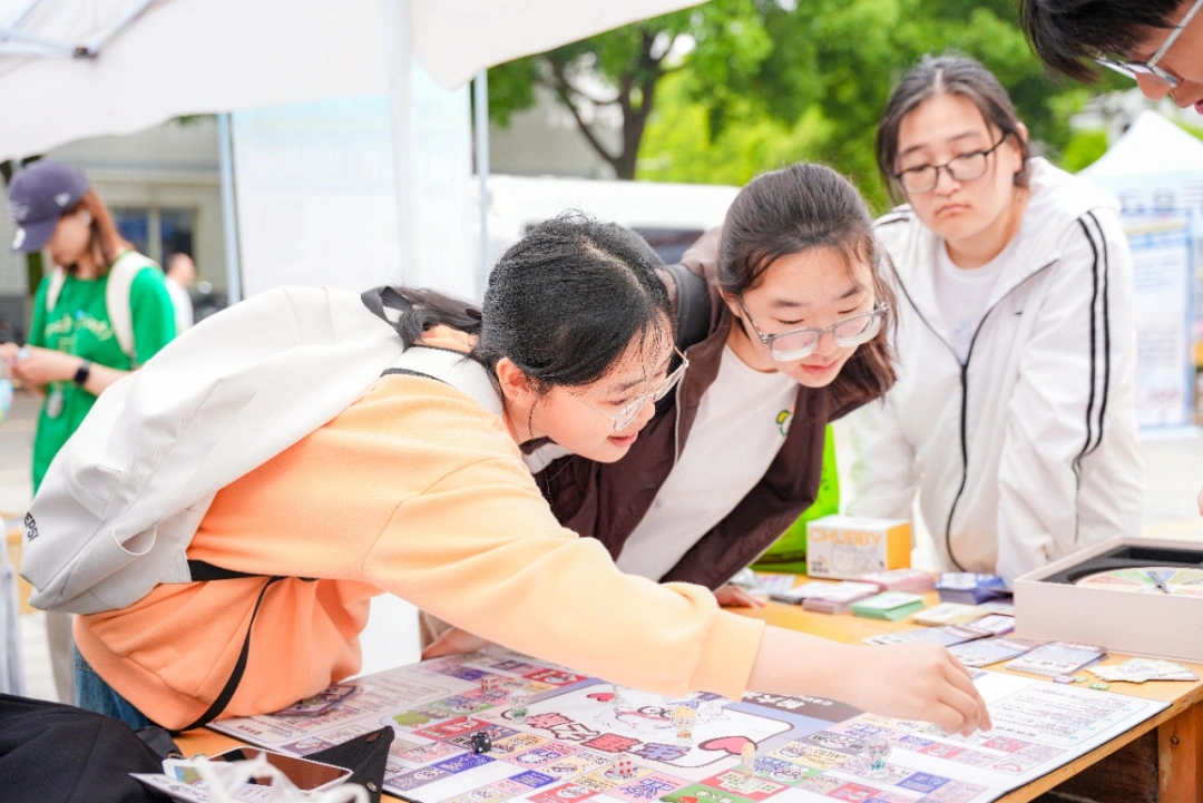 这种代际对话,在“来场填字局”达到高潮。湘雅医学院学生张容舒看着“谜面:能治穷病的不是神,是‘药神’”,迅速写下《我不是药神》:“看电影时,我还没有读大学,今年读到这本书,才更真切感受到‘救死扶伤’的重量。”而在“粉大冶生涯大富翁”点位互动中,人文学院学生罗淑蓝抽到“是否参加读书会”的选项:“选‘是’!只有在阅读里,才能碰见各种各样的人,听说形形色色的事,接触不同年代留下来的思想菁华!”