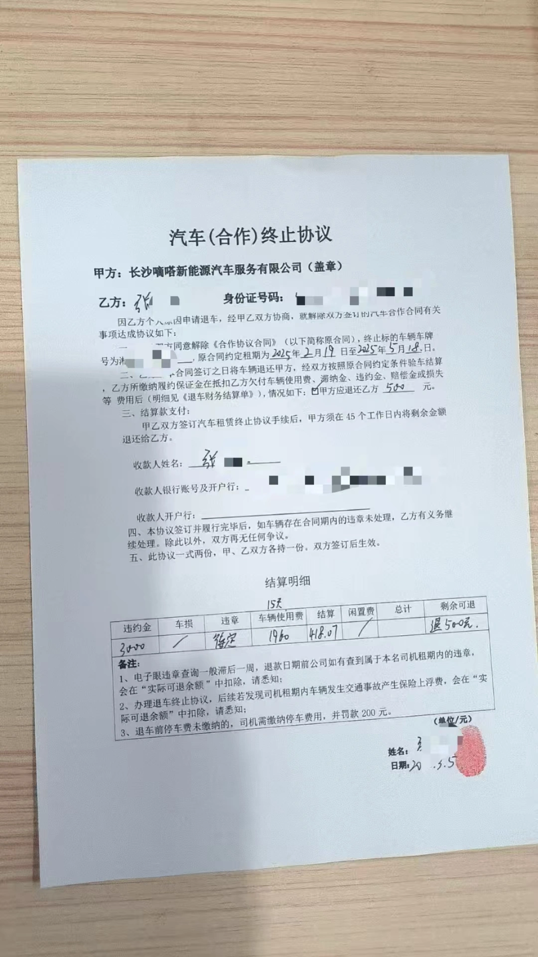 该工作人员解释,按照合同规定,张先生中途解约,他这4600多元的营业额,加上保证金共5600多元,是无法抵消3000元的违约金、平台抽成(又名车辆使用费)等费用的,但考虑到张先生也辛辛苦苦干了15天,就给他退了400多元。但违约金不能退,“他做了2周就走,公司也是亏损的。”