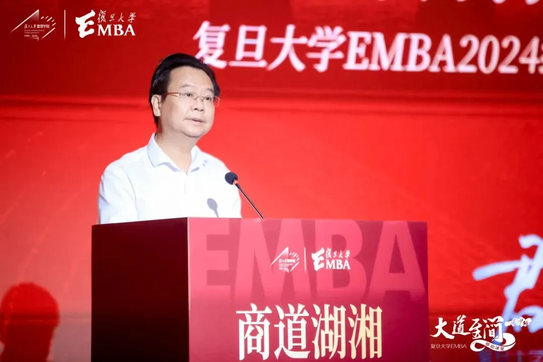 湖南省人大常委会委员、湖南省人大财政经济委员会副主任委员曹健华先生随后致辞。他表示,湖南近年来在制造、文创、科技等多个领域取得突破性发展,同时他作为东道主热烈欢迎复旦EMBA的同学校友与地方产业展开更深层次交流与合作。