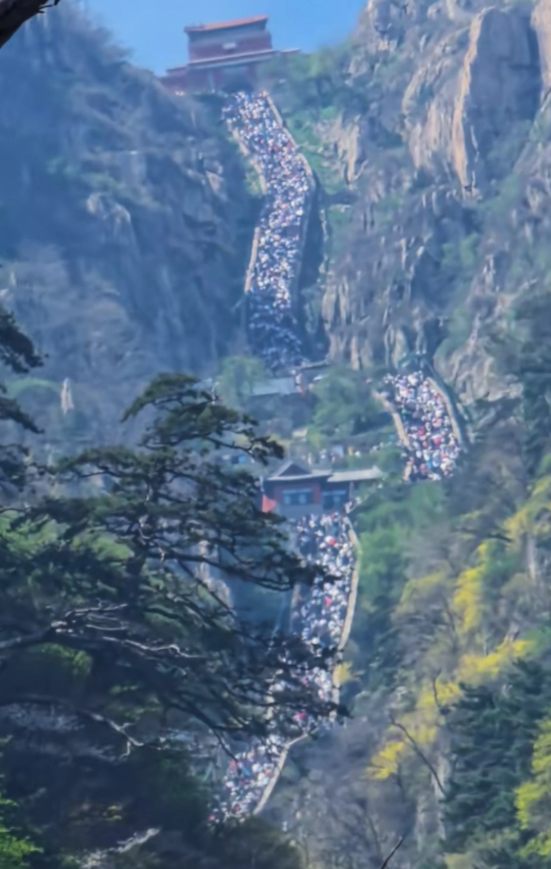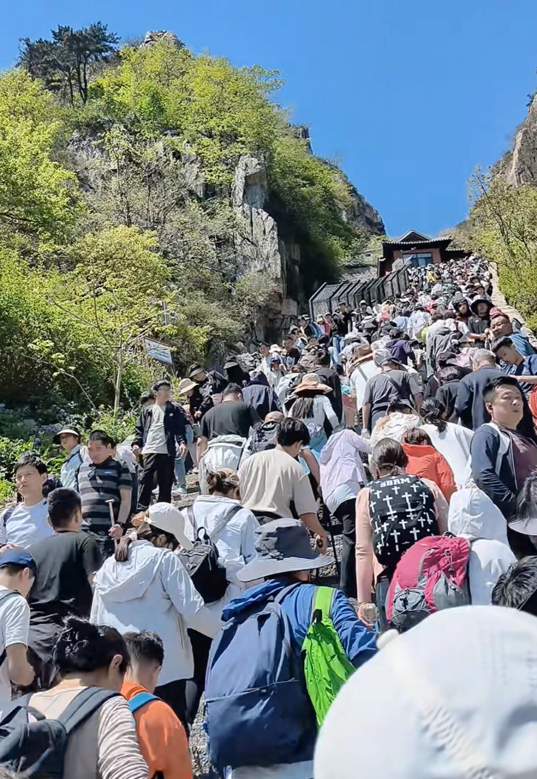 五一期间泰山景区内人山人海。网络截图。