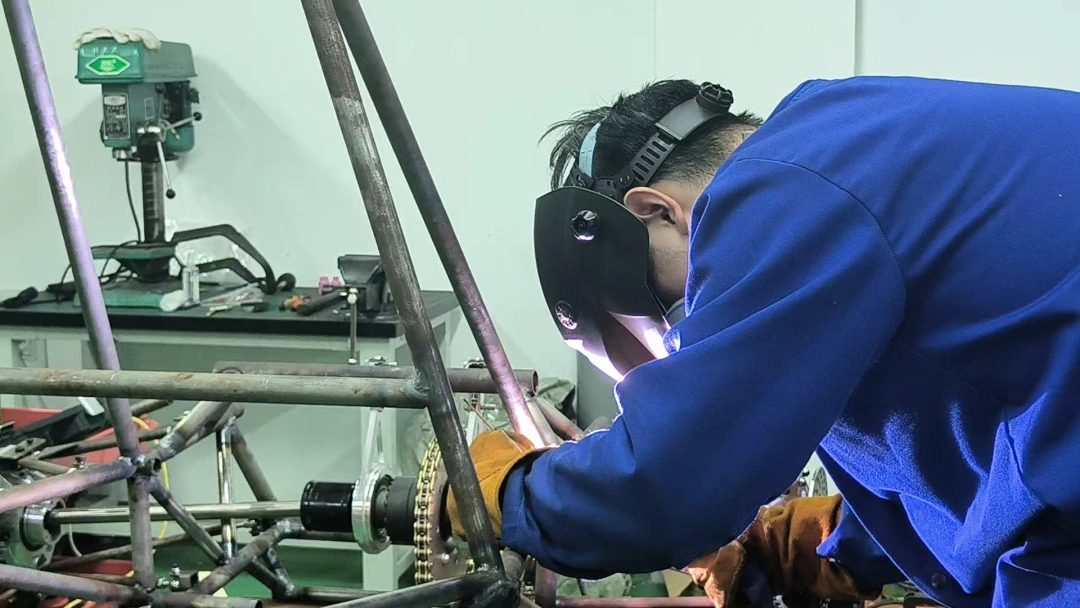 车队陈同学主要负责车辆框架的焊接工作,作为整车较为重要的一环,他介绍这辆赛车的焊接点有一百多处,螺丝等接口也有百余处,焊了半个多月。